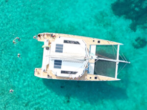 Captain Michael, owner of the fleet, is a leading skipper expert in catamarans. During his career, he crossed the North Atlantic Ocean, won the Heineken Regatta in the Caribbean (multihull class) and was captain on large luxurious catamarans up to 85 ft. Having worked extensively both in the Caribbean and the Aegean Sea for 24 years, he is in Mykonos for twelve years, where he is always willing to share his deep passion for sailing. Captain Michael is capable of guaranteeing his guests a safe and enjoyable journey as well as an unforgettable experience of discovery in the pristine waters of the Cyclades. Very demanding with regard the quality of service offered on board, he personally trains his crew to ensure that all tours on all boats reach the same unmatched level of service.